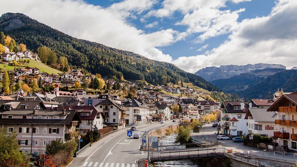- จากนั้นนำท่านเดินย่านใจกลางเมืองที่มีร้านค้า ร้านอาหาร และโรงเเรมต่างๆตั้งอยู่ อาคารเเต่ละหลังต่างมีเอกลักษณ์และตกเเต่งได้อย่างน่ารัก สวยงาม เป็นบริเวณที่นักท่องเที่ยวนิยมมาเดินเล่นและจับจ่ายใช้สอยกันอย่างคึกคัก บางคนยกย่องให้เป็นถนนคนเดินสายช็อบปิ้งที่สวยงามที่สุดของโดโลไมท์เลยทีเดียว ให้ท่านชมโบสถ์ Saint Ulrich ตั้งอยู่ทิศเหนือของเมือง สถาปัตยกรรมสไตล์เรอเนสซองซ์และประติมากรรมบาโรกซึ่งเป็นสัญลักษณ์ของเมือง