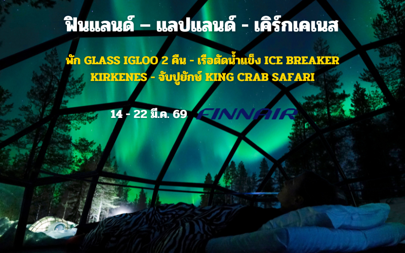 - 1พักโรงแรมกระจก GLASS IGLOO 2 คืน (สะดวกสบายมีห้องอาบน้ำในตัว) ประเทศฟินแลนด์